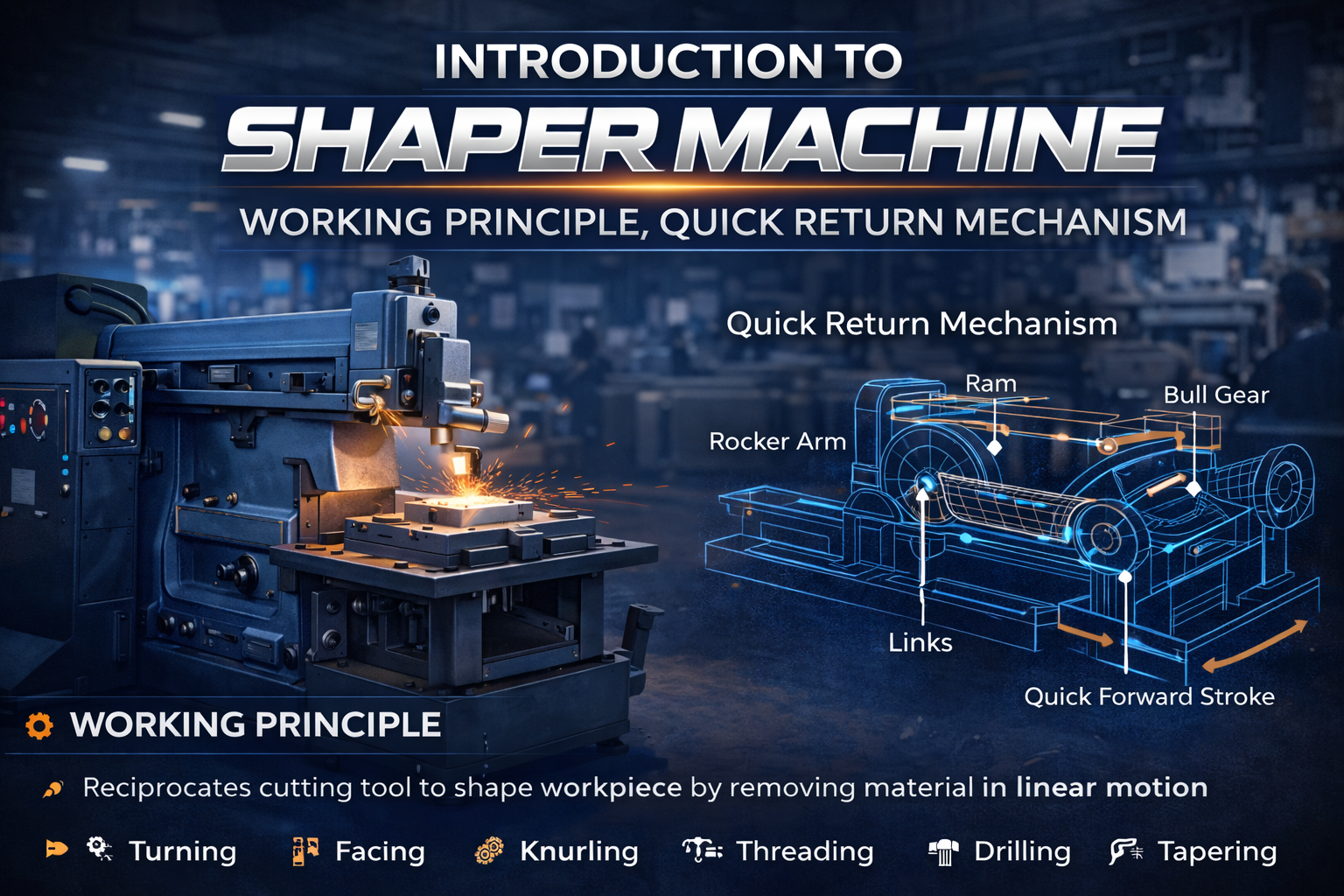 Introduction to Shaper Machine, Working Principle, Quick Return Mechanism